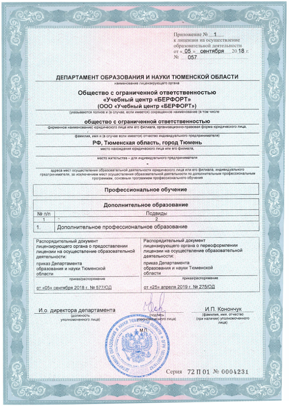 Учебный центр "БЕРФОРТ" имеет собственную лицензию на образовательную деятельность - это позволяет Вам быть уверенными в лучшем сочетании стоимости и качества в рамках официального договора на обучение